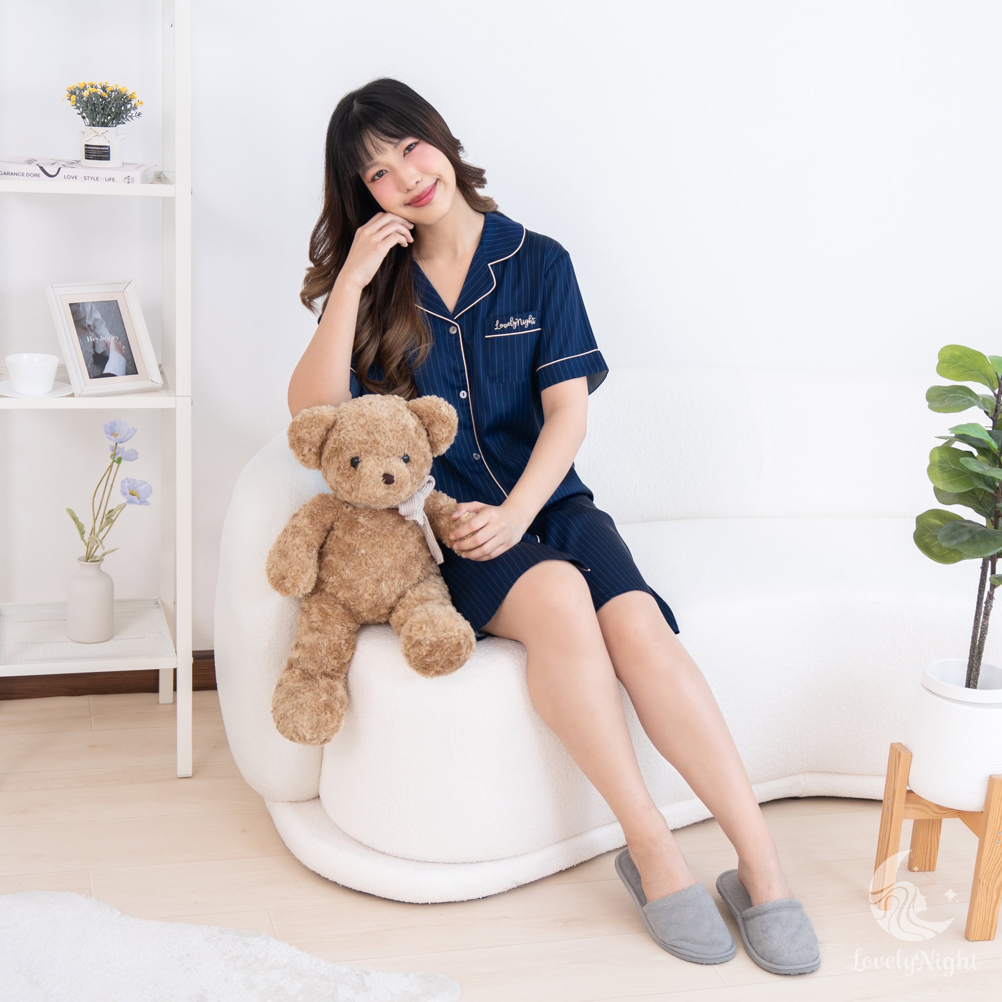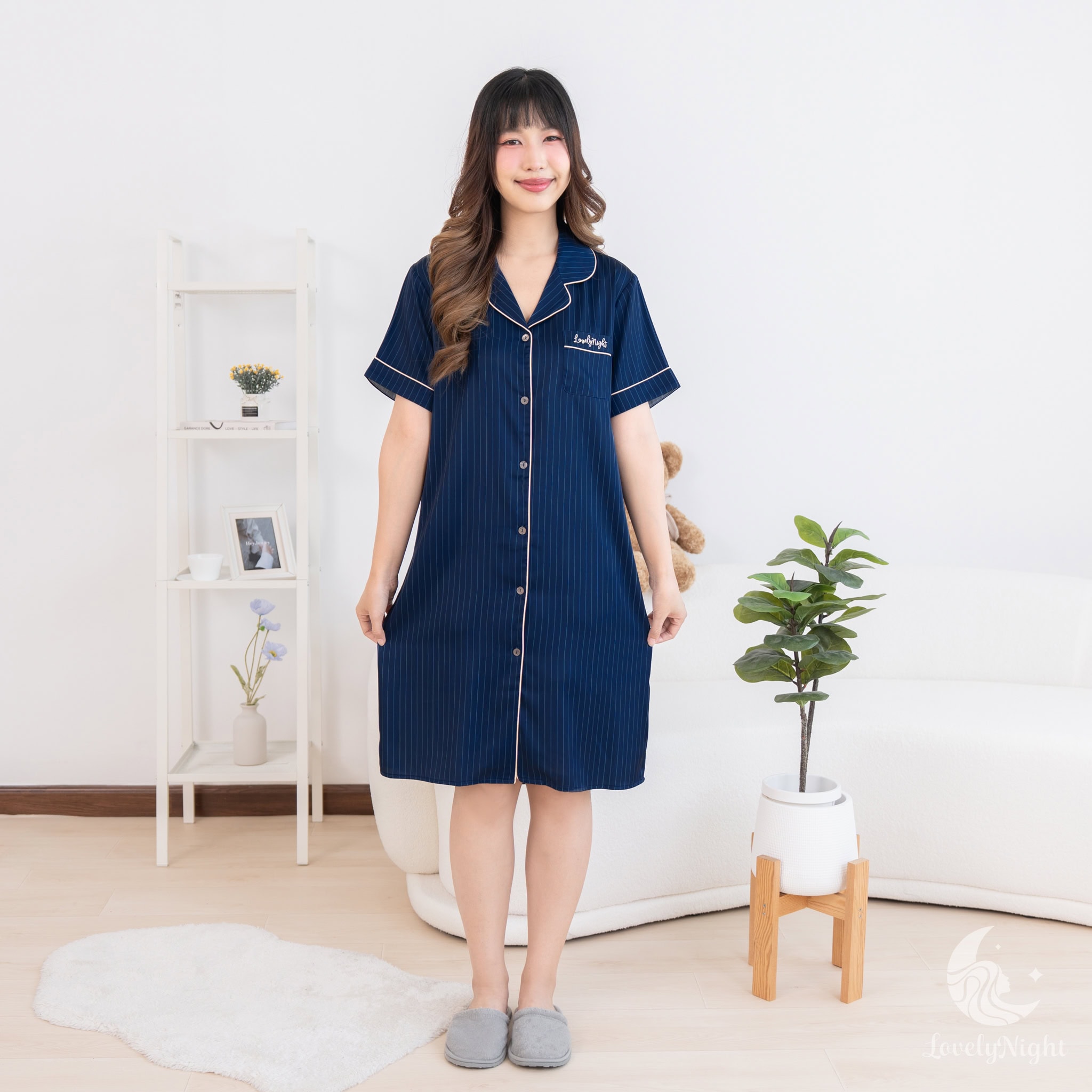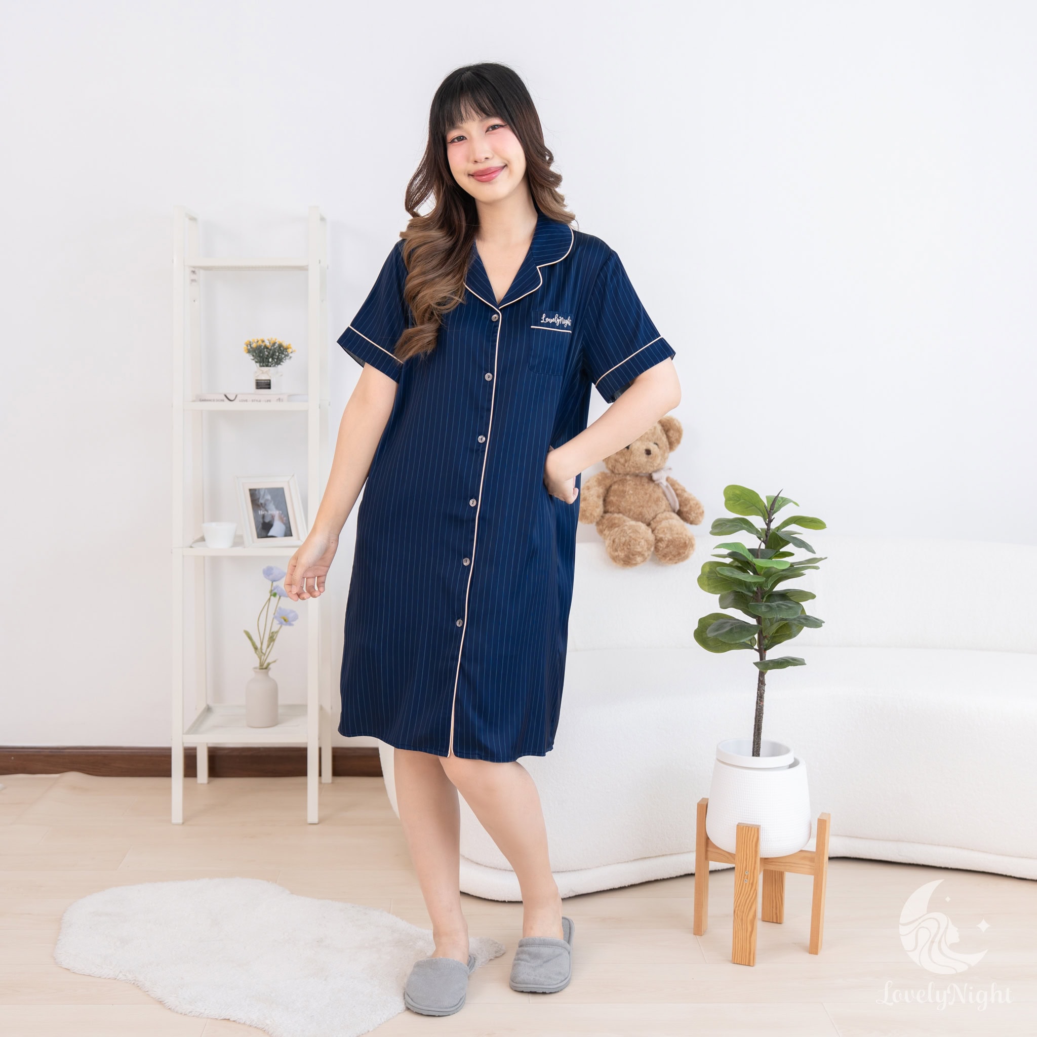 ชุดนอนผลิตจากผ้าไหมซาตินหรือที่เรียกว่า Silk Satin ส่วนประกอบหลักคือโพลีเอสเตอร์ 95% เกรดพรีเมียมทอละเอียด จุดเด่นคือให้สัมผัสที่นุ่มลื่น ละมุนผิว สวมใส่แล้วรู้สึกเบา สบาย ระบายอากาศได้ดีและเนื้อผ้ายังมีความเงาเป็นประกายกำลังพอเหมาะจะไม่มันวาวเหมือนผ้าซาตินทั่วไป อีกทั้งยังมีเส้นใยสแปนเด็กซ์อีก 5% ชุดนอนจึงมีความยืดหยุ่นได้เล็กน้อย ทำให้ในขณะนอนหลับรู้สึกไม่รั้งตัวช่วยให้นอนหลับสนิทมากขึ้นด้วยค่ะ