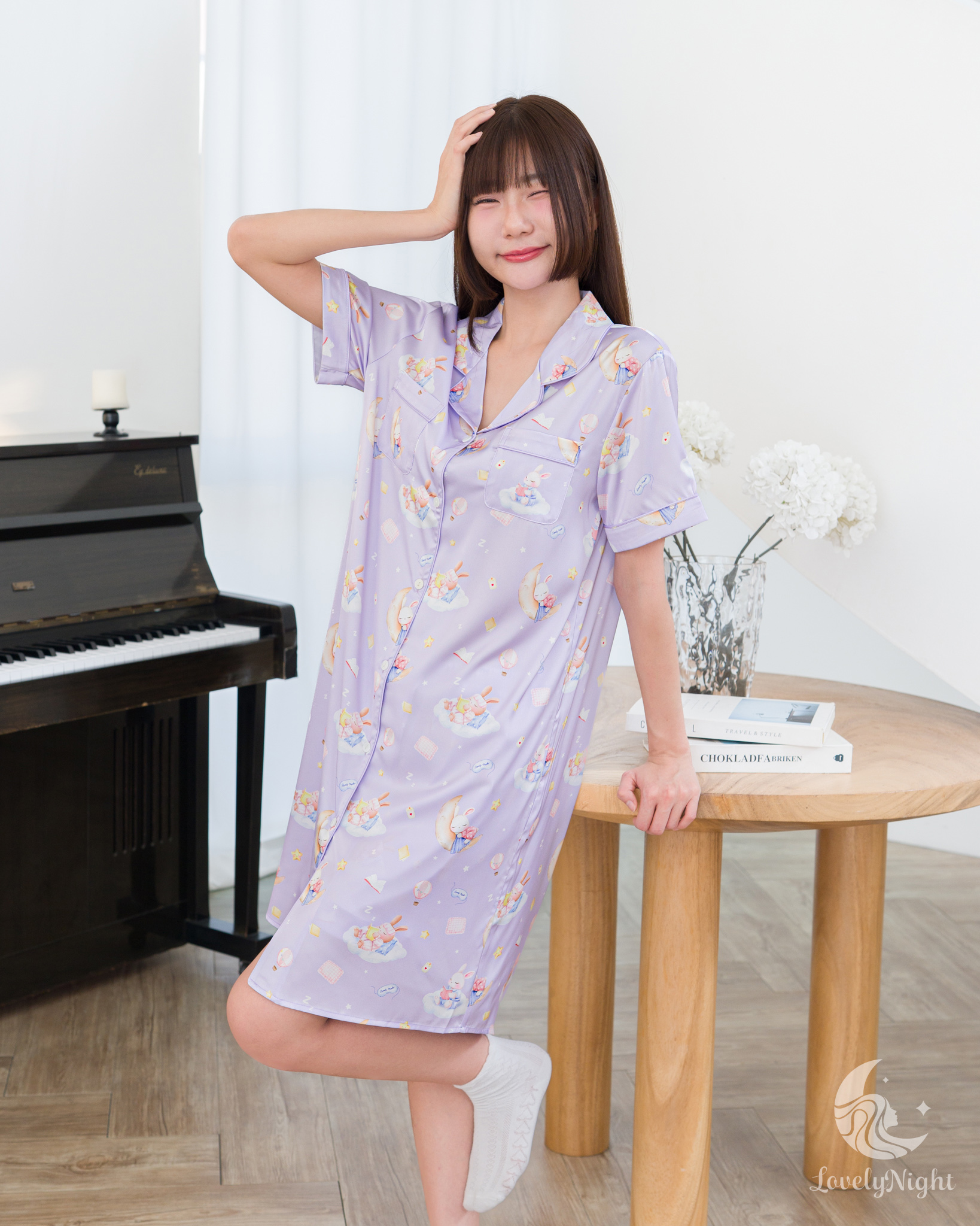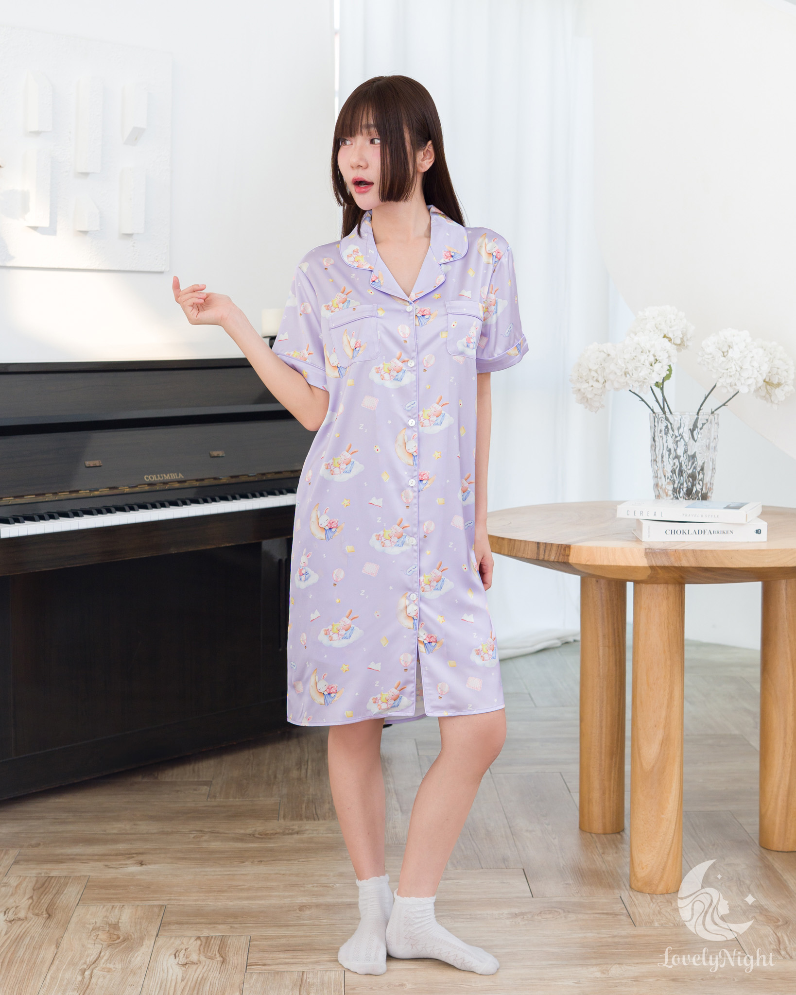ชุดนอนผลิตจากผ้าไหมซาตินหรือที่เรียกว่า Silk Satin ส่วนประกอบหลักคือโพลีเอสเตอร์ 95% เกรดพรีเมียมทอละเอียด จุดเด่นคือให้สัมผัสที่นุ่มลื่น ละมุนผิว สวมใส่แล้วรู้สึกเบา สบาย ระบายอากาศได้ดีและเนื้อผ้ายังมีความเงาเป็นประกายกำลังพอเหมาะจะไม่มันวาวเหมือนผ้าซาตินทั่วไป อีกทั้งยังมีเส้นใยสแปนเด็กซ์อีก 5% ชุดนอนจึงมีความยืดหยุ่นได้เล็กน้อย ทำให้ในขณะนอนหลับรู้สึกไม่รั้งตัวช่วยให้นอนหลับสนิทมากขึ้นด้วยค่ะ