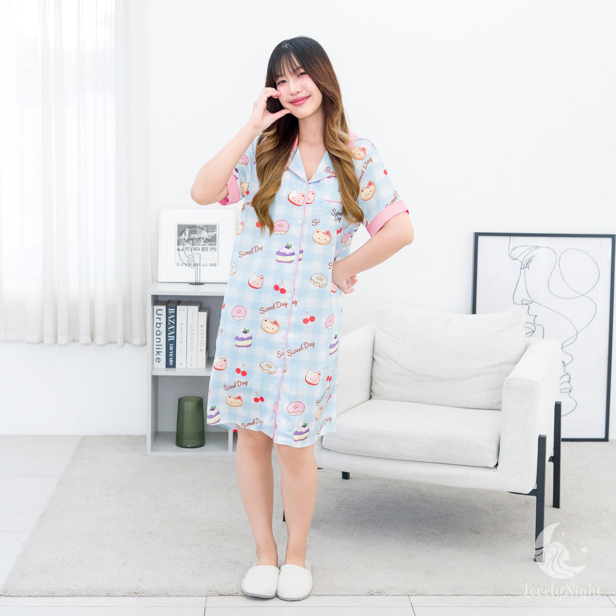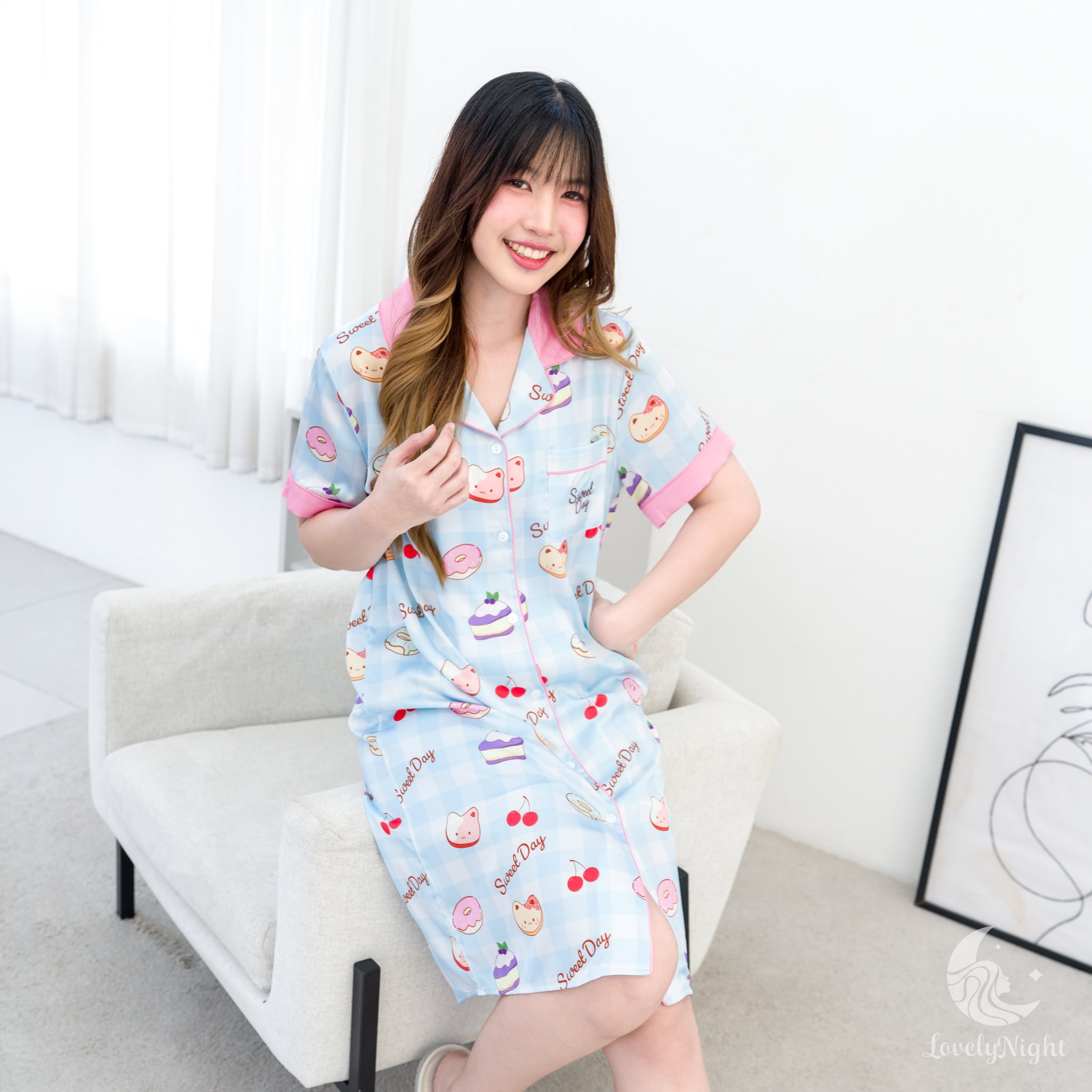 ชุดนอนผลิตจากผ้าไหมซาตินหรือที่เรียกว่า Silk Satin ส่วนประกอบหลักคือโพลีเอสเตอร์ 95% เกรดพรีเมียมทอละเอียด จุดเด่นคือให้สัมผัสที่นุ่มลื่น ละมุนผิว สวมใส่แล้วรู้สึกเบา สบาย ระบายอากาศได้ดีและเนื้อผ้ายังมีความเงาเป็นประกายกำลังพอเหมาะจะไม่มันวาวเหมือนผ้าซาตินทั่วไป อีกทั้งยังมีเส้นใยสแปนเด็กซ์อีก 5% ชุดนอนจึงมีความยืดหยุ่นได้เล็กน้อย ทำให้ในขณะนอนหลับรู้สึกไม่รั้งตัวช่วยให้นอนหลับสนิทมากขึ้นด้วยค่ะ