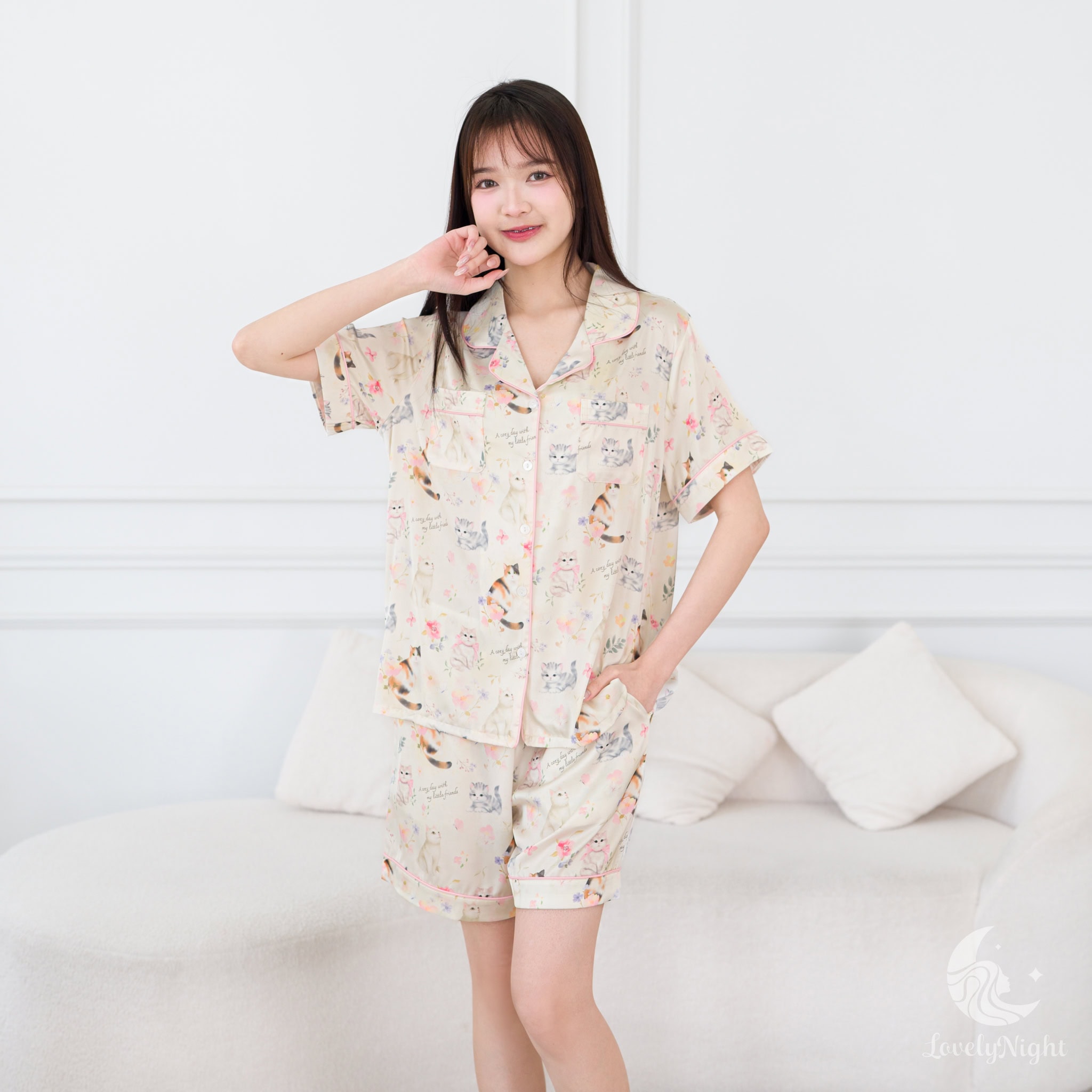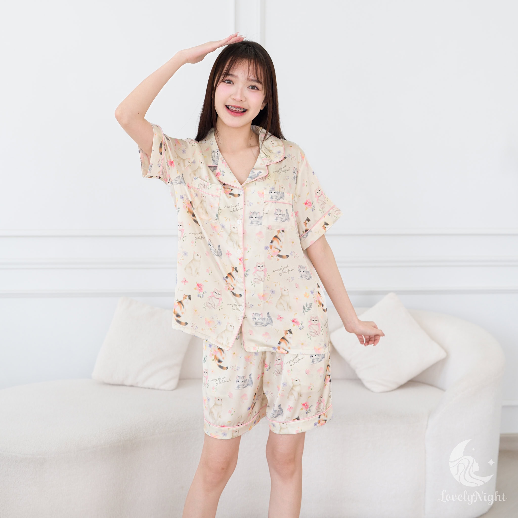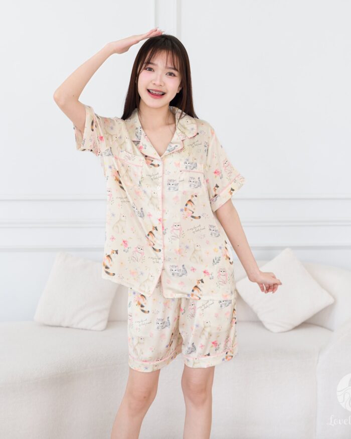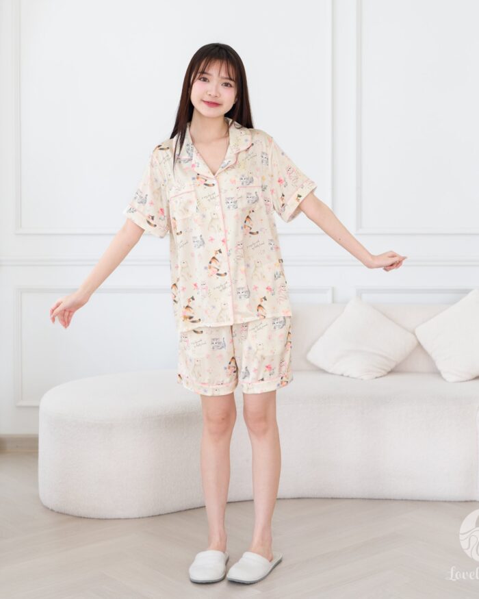 ชุดนอนผลิตจากผ้าไหมซาตินหรือที่เรียกว่า Silk Satin ส่วนประกอบหลักคือโพลีเอสเตอร์ 95% เกรดพรีเมียมทอละเอียด จุดเด่นคือให้สัมผัสที่นุ่มลื่น ละมุนผิว สวมใส่แล้วรู้สึกเบา สบาย ระบายอากาศได้ดีและเนื้อผ้ายังมีความเงาเป็นประกายกำลังพอเหมาะจะไม่มันวาวเหมือนผ้าซาตินทั่วไป อีกทั้งยังมีเส้นใยสแปนเด็กซ์อีก 5% ชุดนอนจึงมีความยืดหยุ่นได้เล็กน้อย ทำให้ในขณะนอนหลับรู้สึกไม่รั้งตัวช่วยให้นอนหลับสนิทมากขึ้นด้วยค่ะ