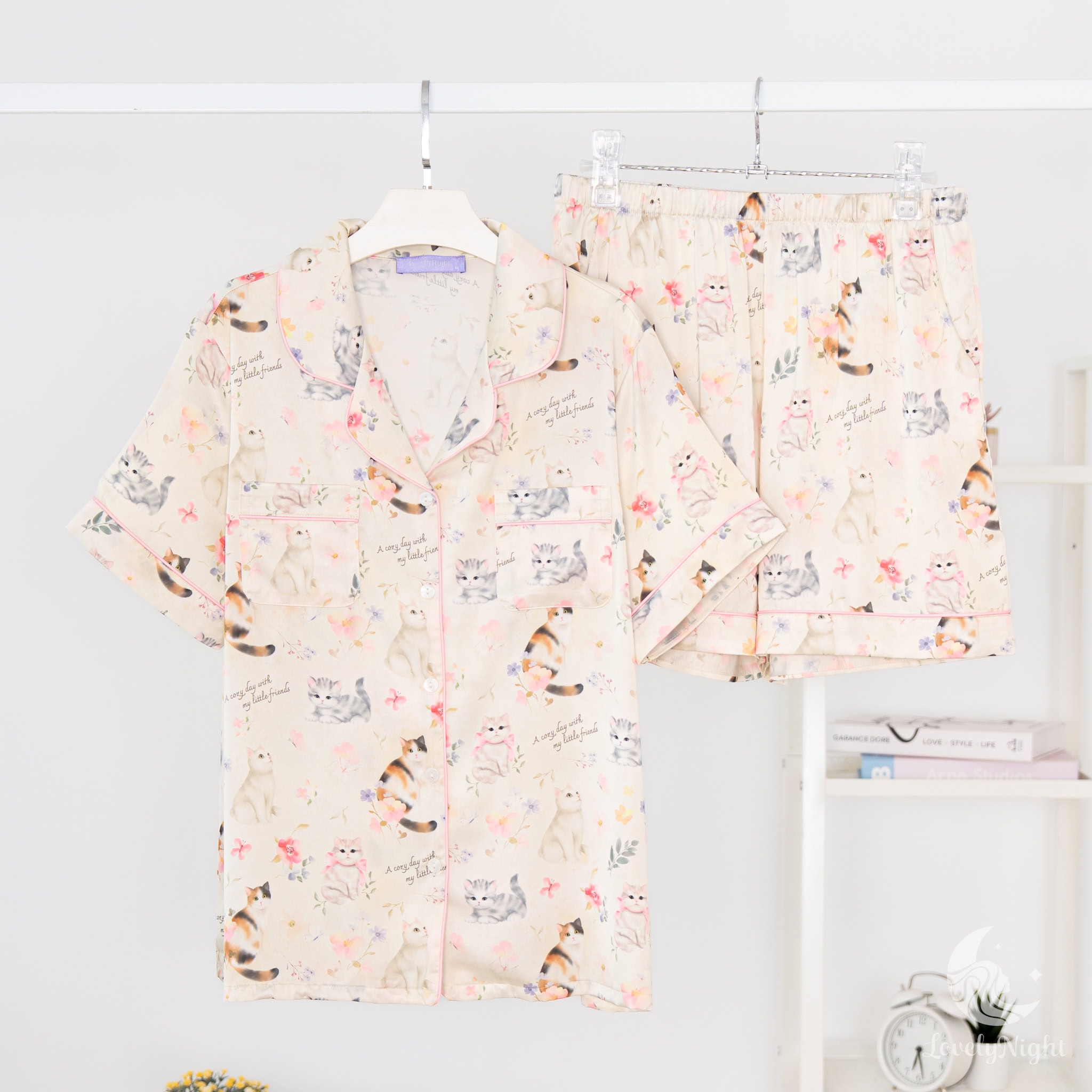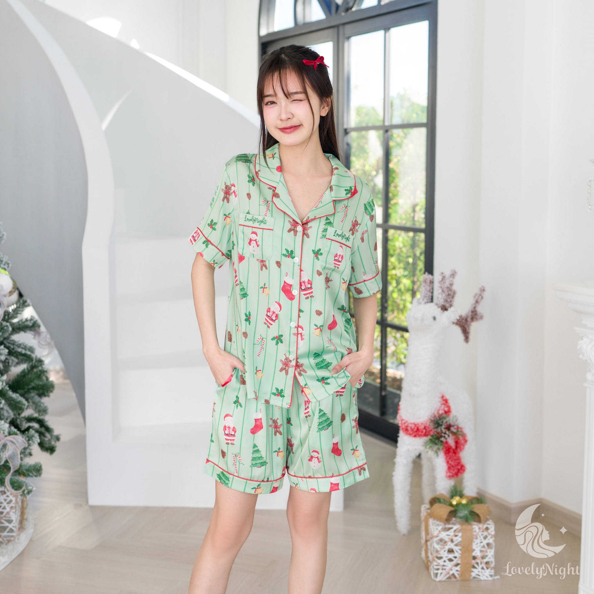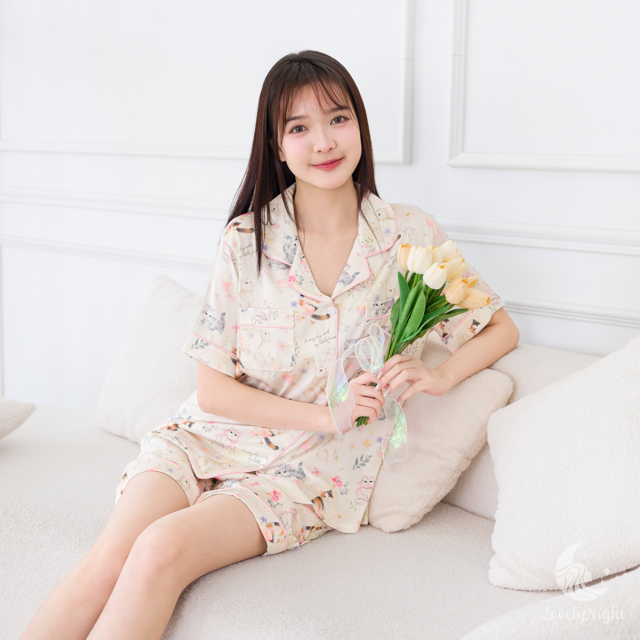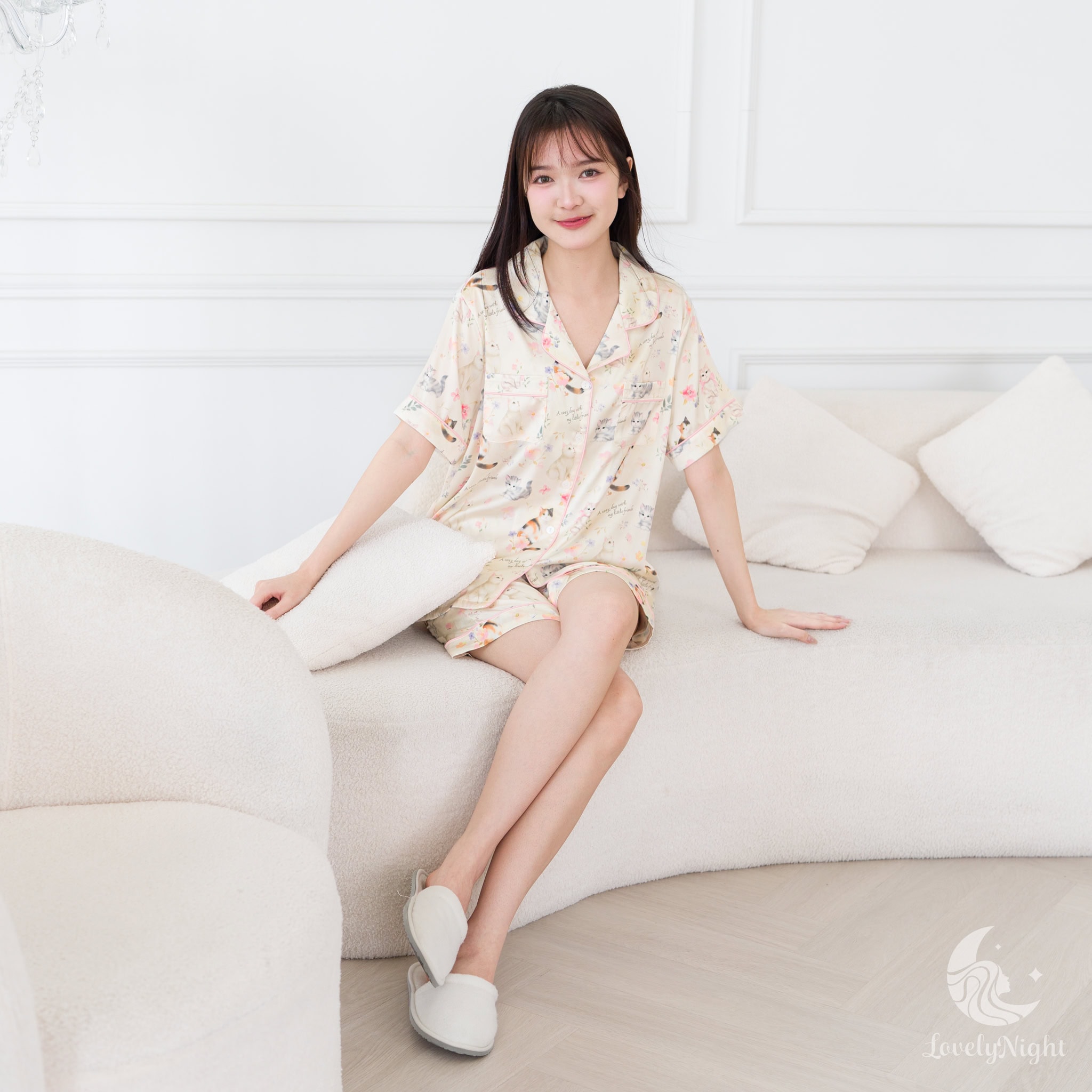 ชุดนอนผลิตจากผ้าไหมซาตินหรือที่เรียกว่า Silk Satin ส่วนประกอบหลักคือโพลีเอสเตอร์ 95% เกรดพรีเมียมทอละเอียด จุดเด่นคือให้สัมผัสที่นุ่มลื่น ละมุนผิว สวมใส่แล้วรู้สึกเบา สบาย ระบายอากาศได้ดีและเนื้อผ้ายังมีความเงาเป็นประกายกำลังพอเหมาะจะไม่มันวาวเหมือนผ้าซาตินทั่วไป อีกทั้งยังมีเส้นใยสแปนเด็กซ์อีก 5% ชุดนอนจึงมีความยืดหยุ่นได้เล็กน้อย ทำให้ในขณะนอนหลับรู้สึกไม่รั้งตัวช่วยให้นอนหลับสนิทมากขึ้นด้วยค่ะ