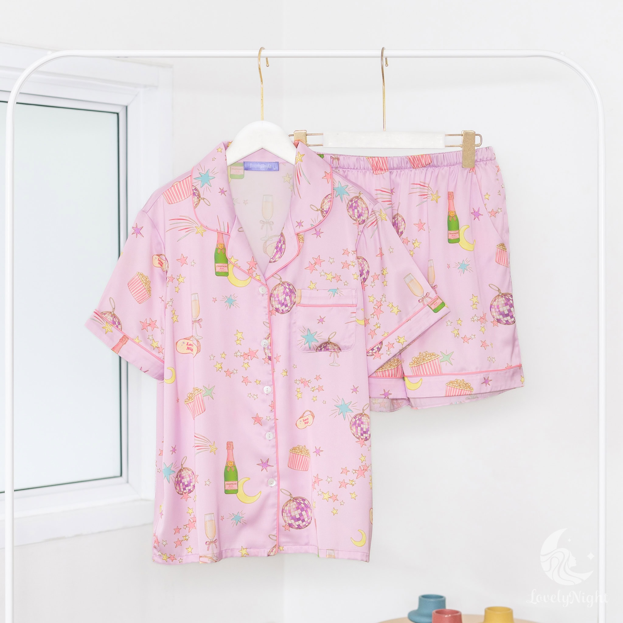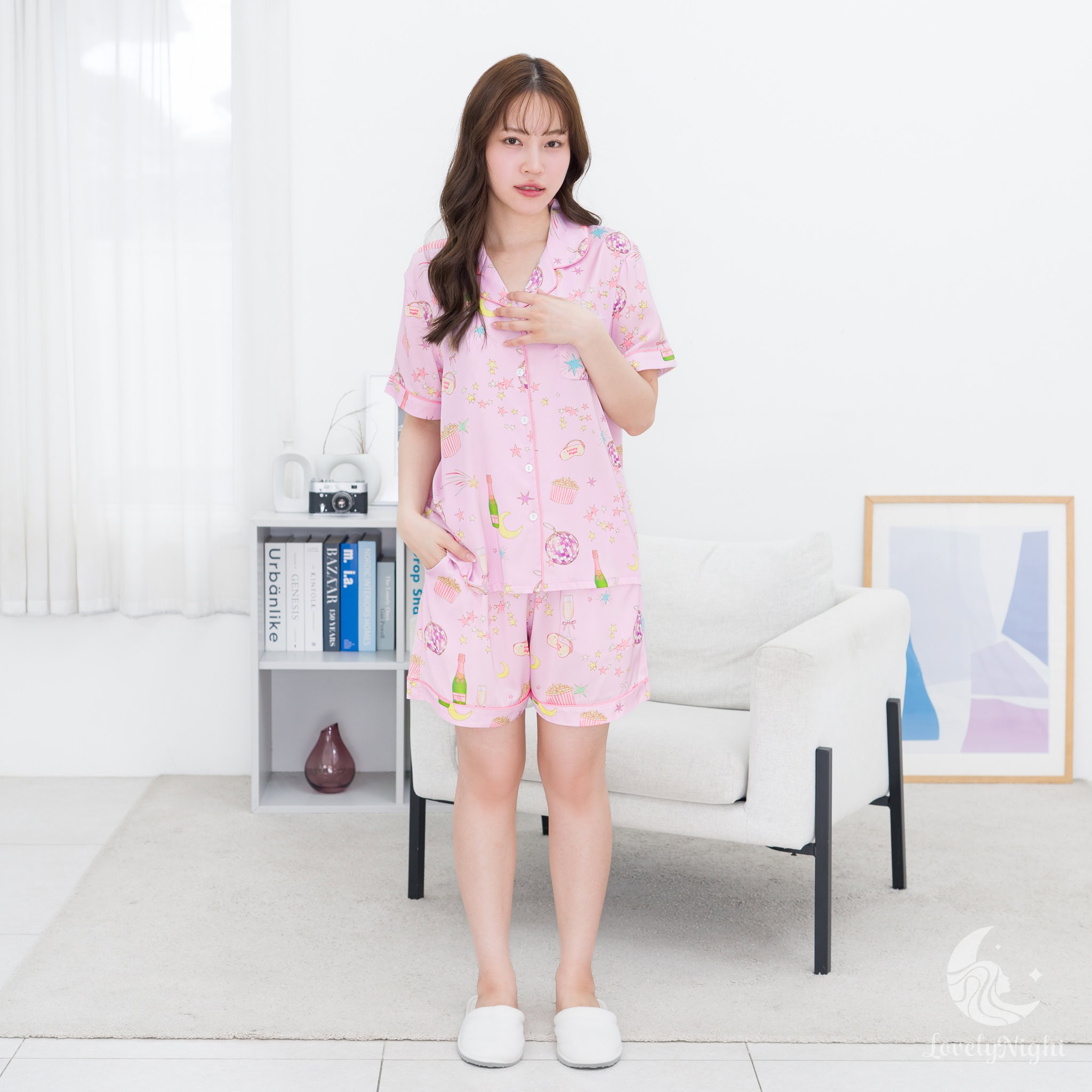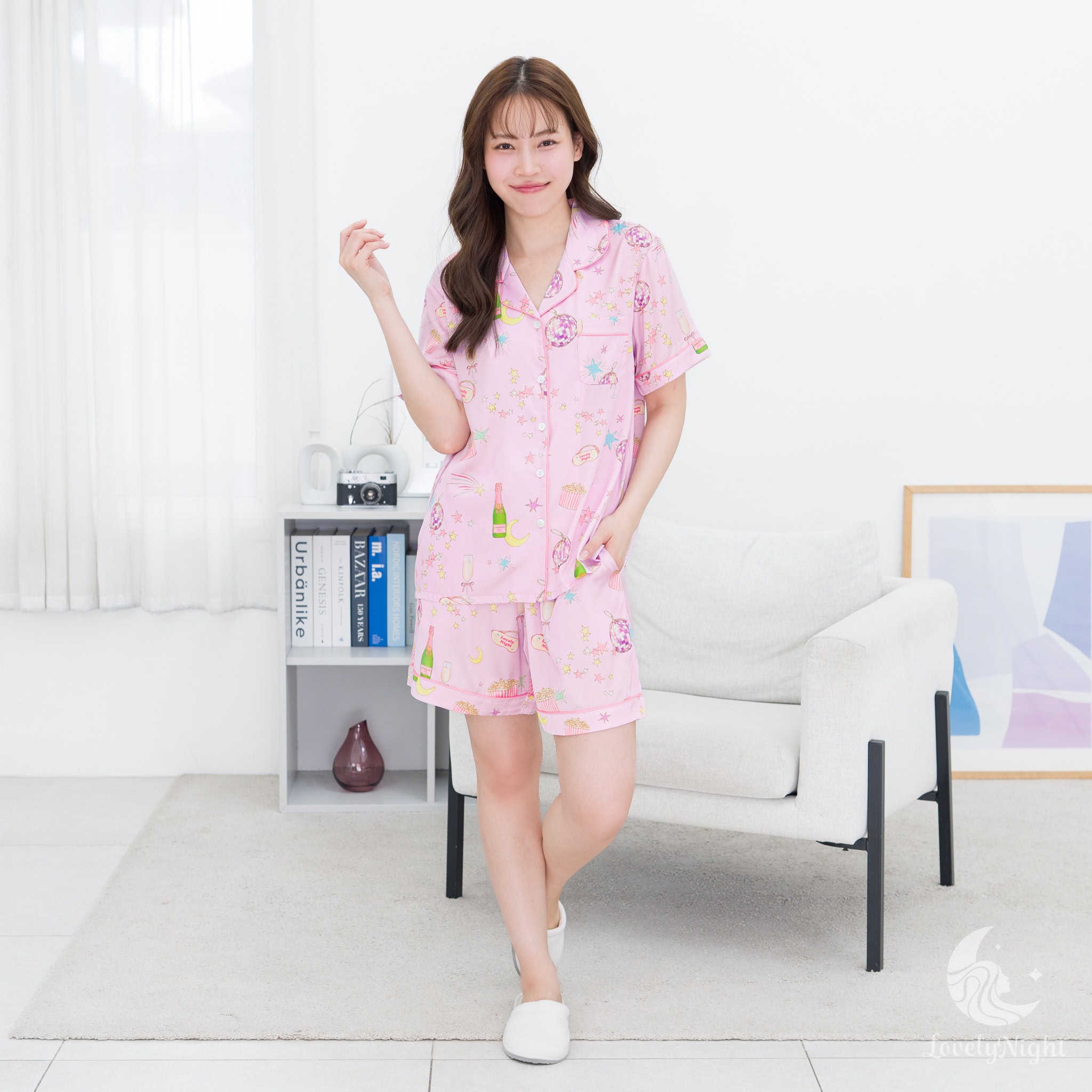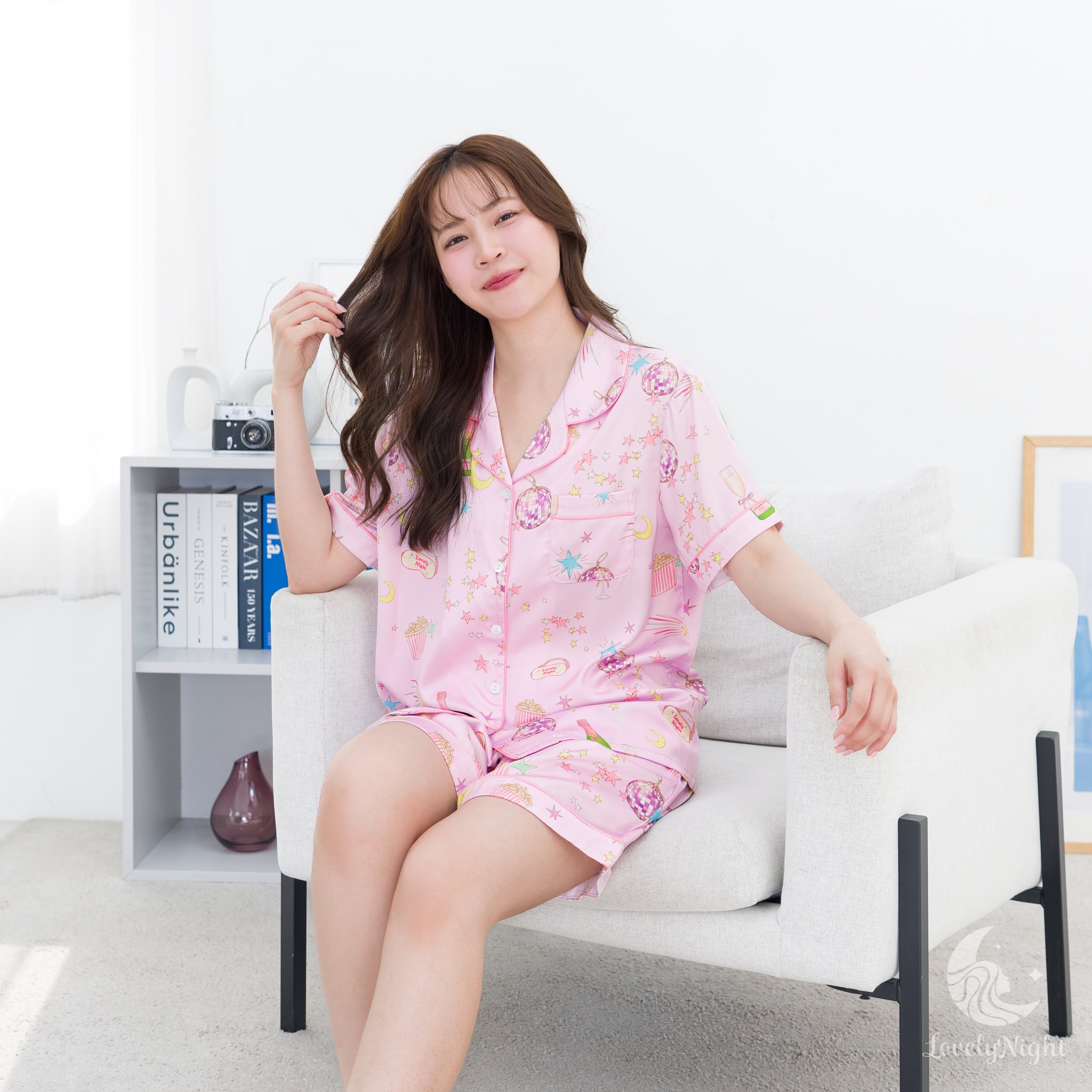 ชุดนอนผลิตจากผ้าไหมซาตินหรือที่เรียกว่า Silk Satin ส่วนประกอบหลักคือโพลีเอสเตอร์ 95% เกรดพรีเมียมทอละเอียด จุดเด่นคือให้สัมผัสที่นุ่มลื่น ละมุนผิว สวมใส่แล้วรู้สึกเบา สบาย ระบายอากาศได้ดีและเนื้อผ้ายังมีความเงาเป็นประกายกำลังพอเหมาะจะไม่มันวาวเหมือนผ้าซาตินทั่วไป อีกทั้งยังมีเส้นใยสแปนเด็กซ์อีก 5% ชุดนอนจึงมีความยืดหยุ่นได้เล็กน้อย ทำให้ในขณะนอนหลับรู้สึกไม่รั้งตัวช่วยให้นอนหลับสนิทมากขึ้นด้วยค่ะ