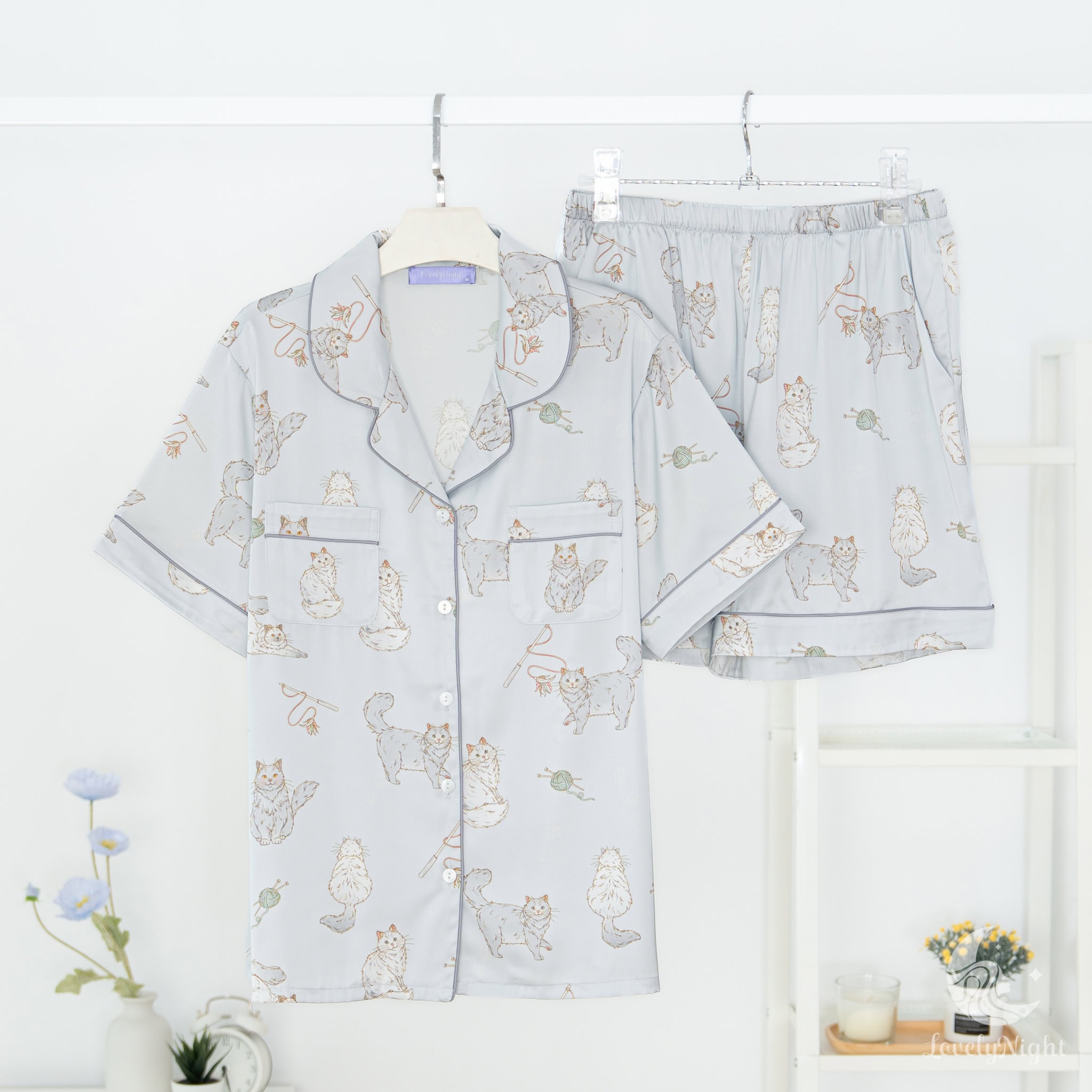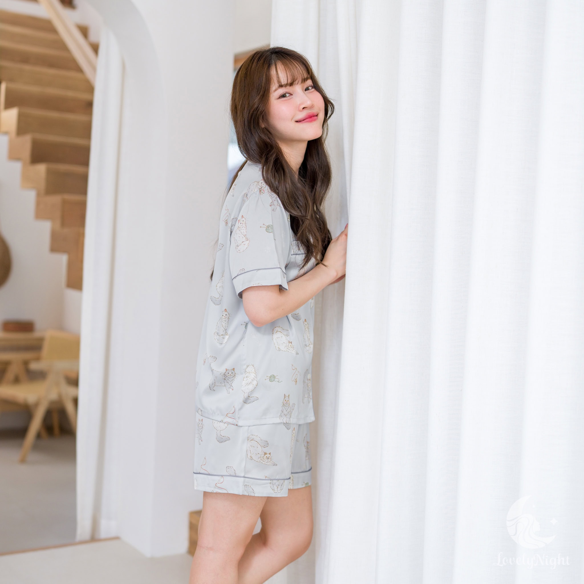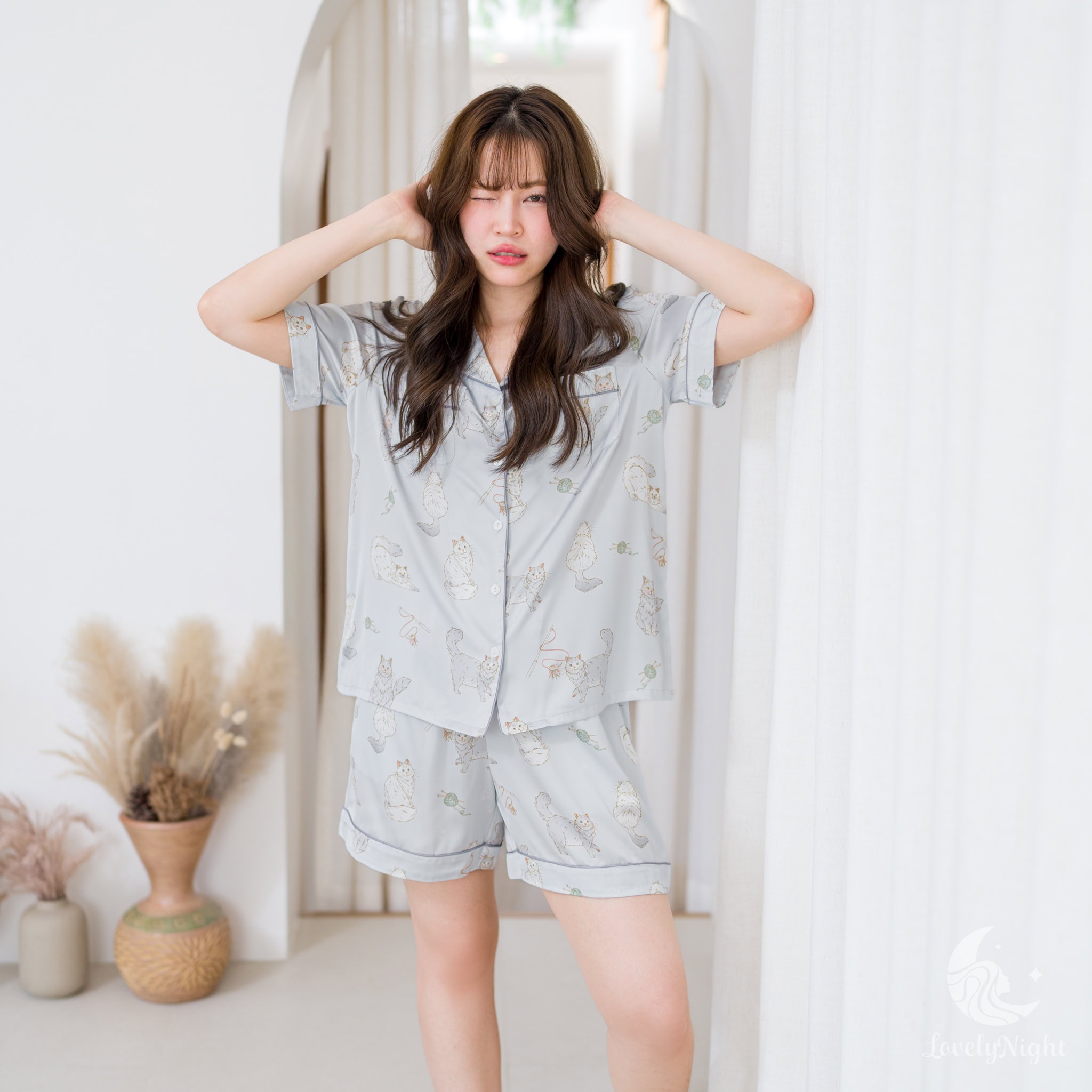 ชุดนอนผลิตจากผ้าไหมซาตินหรือที่เรียกว่า Silk Satin ส่วนประกอบหลักคือโพลีเอสเตอร์ 95% เกรดพรีเมียมทอละเอียด จุดเด่นคือให้สัมผัสที่นุ่มลื่น ละมุนผิว สวมใส่แล้วรู้สึกเบา สบาย ระบายอากาศได้ดีและเนื้อผ้ายังมีความเงาเป็นประกายกำลังพอเหมาะจะไม่มันวาวเหมือนผ้าซาตินทั่วไป อีกทั้งยังมีเส้นใยสแปนเด็กซ์อีก 5% ชุดนอนจึงมีความยืดหยุ่นได้เล็กน้อย ทำให้ในขณะนอนหลับรู้สึกไม่รั้งตัวช่วยให้นอนหลับสนิทมากขึ้นด้วยค่ะ