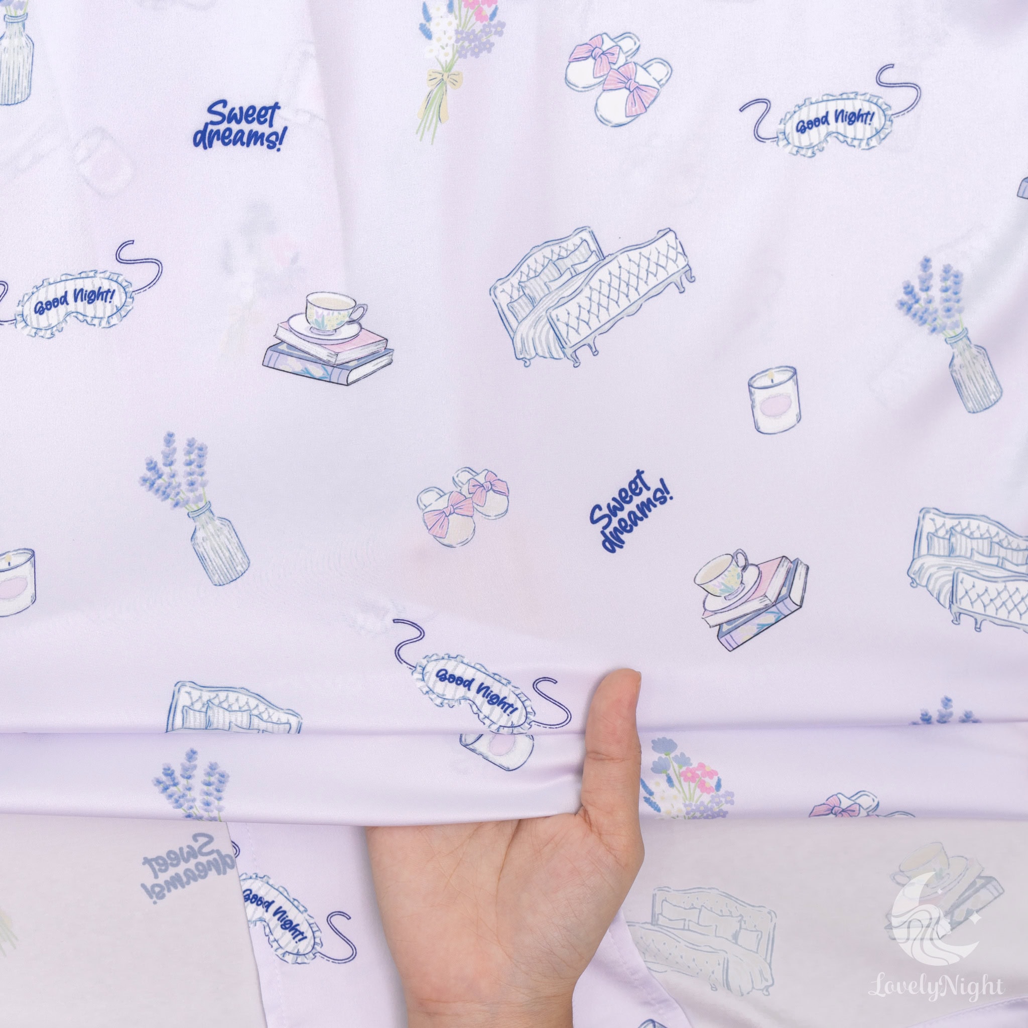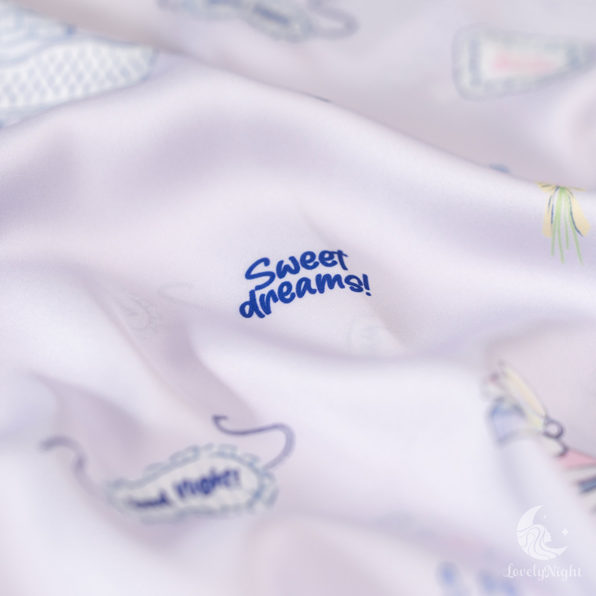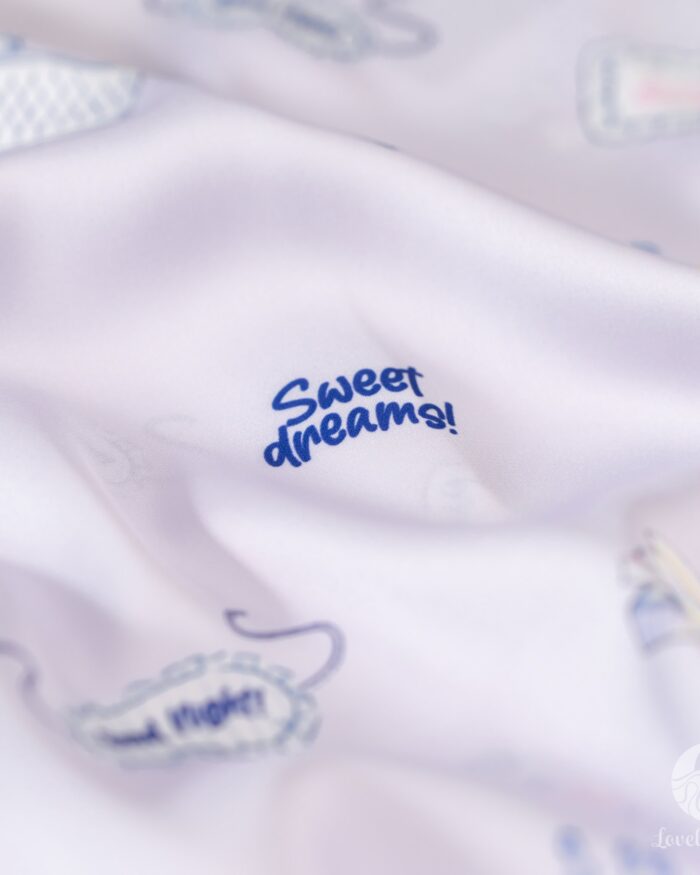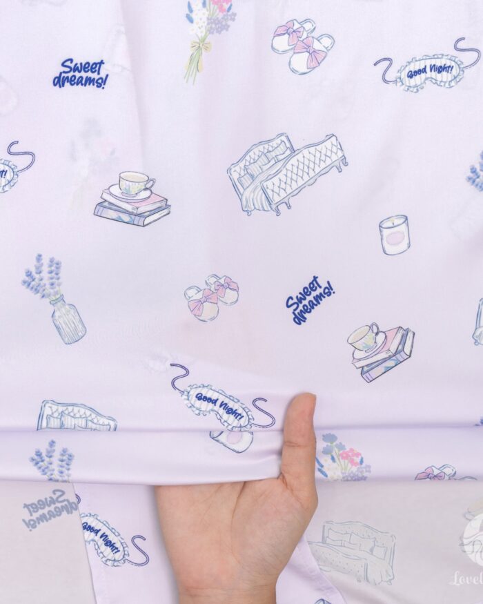 ชุดนอนผลิตจากผ้าไหมซาตินหรือที่เรียกว่า Silk Satin ส่วนประกอบหลักคือโพลีเอสเตอร์ 95% เกรดพรีเมียมทอละเอียด จุดเด่นคือให้สัมผัสที่นุ่มลื่น ละมุนผิว สวมใส่แล้วรู้สึกเบา สบาย ระบายอากาศได้ดีและเนื้อผ้ายังมีความเงาเป็นประกายกำลังพอเหมาะจะไม่มันวาวเหมือนผ้าซาตินทั่วไป อีกทั้งยังมีเส้นใยสแปนเด็กซ์อีก 5% ชุดนอนจึงมีความยืดหยุ่นได้เล็กน้อย ทำให้ในขณะนอนหลับรู้สึกไม่รั้งตัวช่วยให้นอนหลับสนิทมากขึ้นด้วยค่ะ