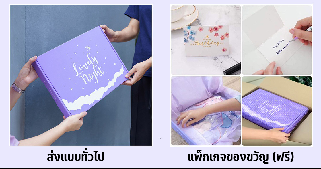 2. ส่งแบบแพ็กเกจของขวัญ(ฟรี) เหมาะสำหรับลูกค้าที่ต้องการให้ของขวัญกับคนพิเศษมีการแพ็คใส่กล่องอีกชั้นให้เพื่อป้องกันกล่องเปื้อนหรือเสียหายและสามารถให้ทีมงานเขียนการ์ดให้ได้ค่ะ