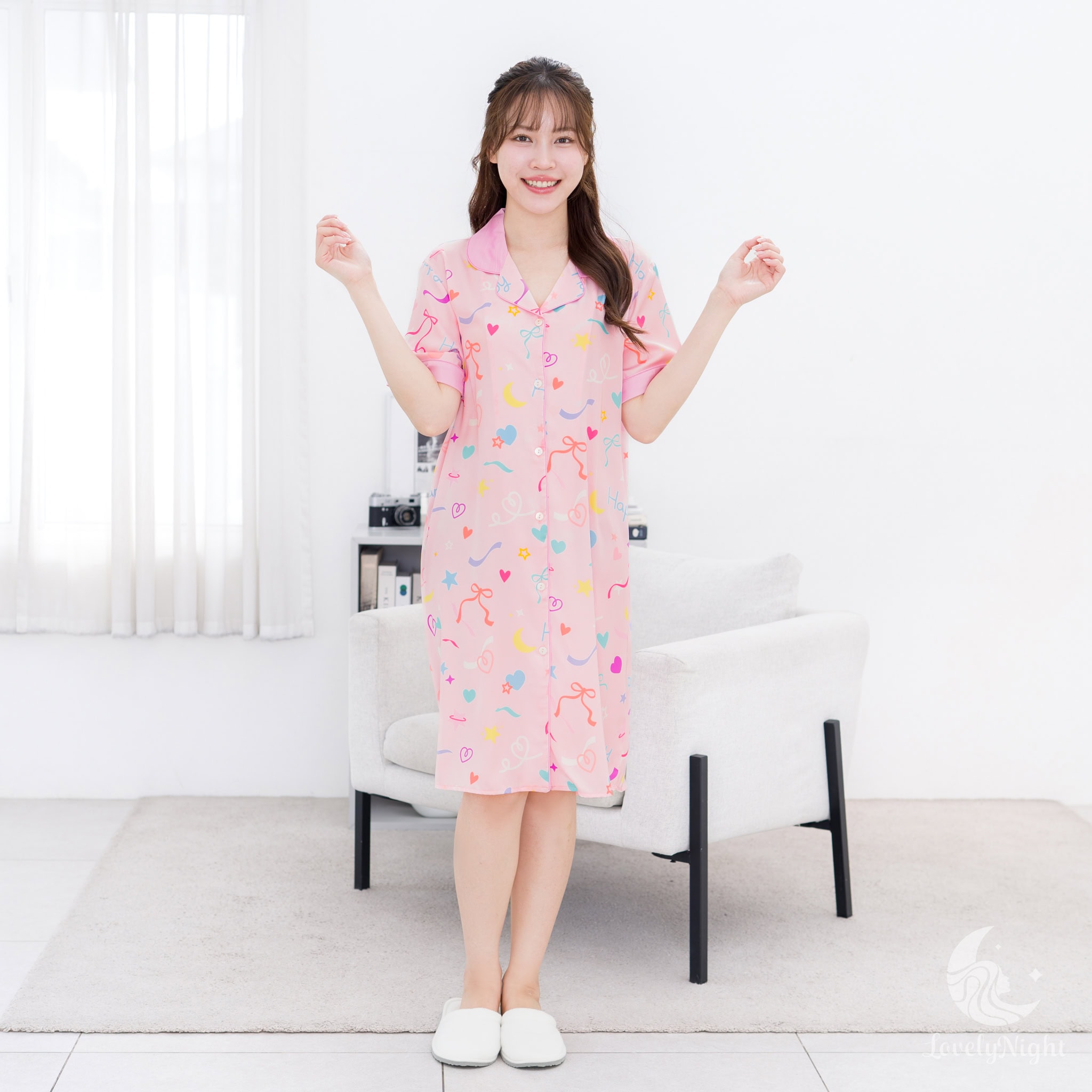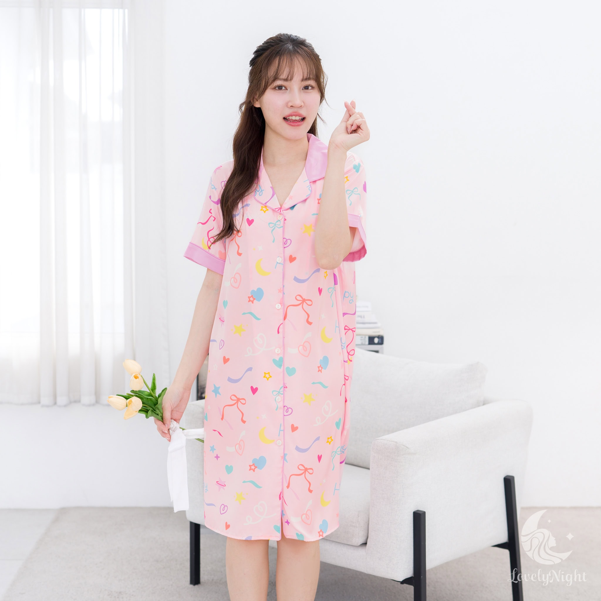 ชุดนอนผลิตจากผ้าไหมซาตินหรือที่เรียกว่า Silk Satin ส่วนประกอบหลักคือโพลีเอสเตอร์ 95% เกรดพรีเมียมทอละเอียด จุดเด่นคือให้สัมผัสที่นุ่มลื่น ละมุนผิว สวมใส่แล้วรู้สึกเบา สบาย ระบายอากาศได้ดีและเนื้อผ้ายังมีความเงาเป็นประกายกำลังพอเหมาะจะไม่มันวาวเหมือนผ้าซาตินทั่วไป อีกทั้งยังมีเส้นใยสแปนเด็กซ์อีก 5% ชุดนอนจึงมีความยืดหยุ่นได้เล็กน้อย ทำให้ในขณะนอนหลับรู้สึกไม่รั้งตัวช่วยให้นอนหลับสนิทมากขึ้นด้วยค่ะ