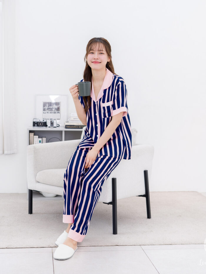ชุดนอน LovelyNight แขนสั้น-ขายาว Midnight Pink D79