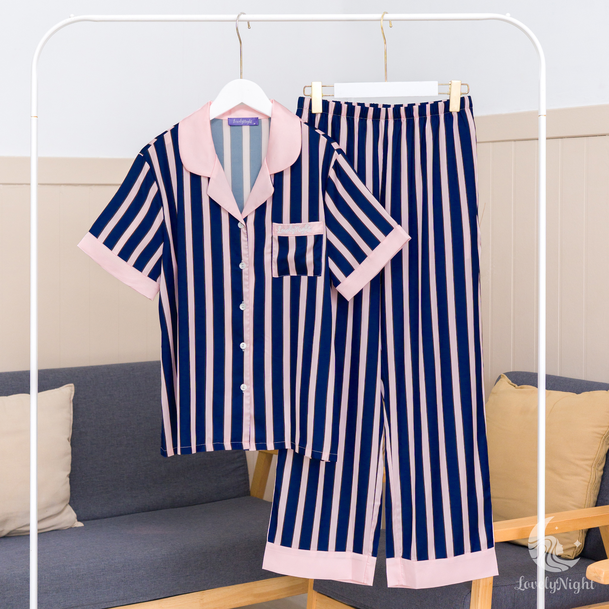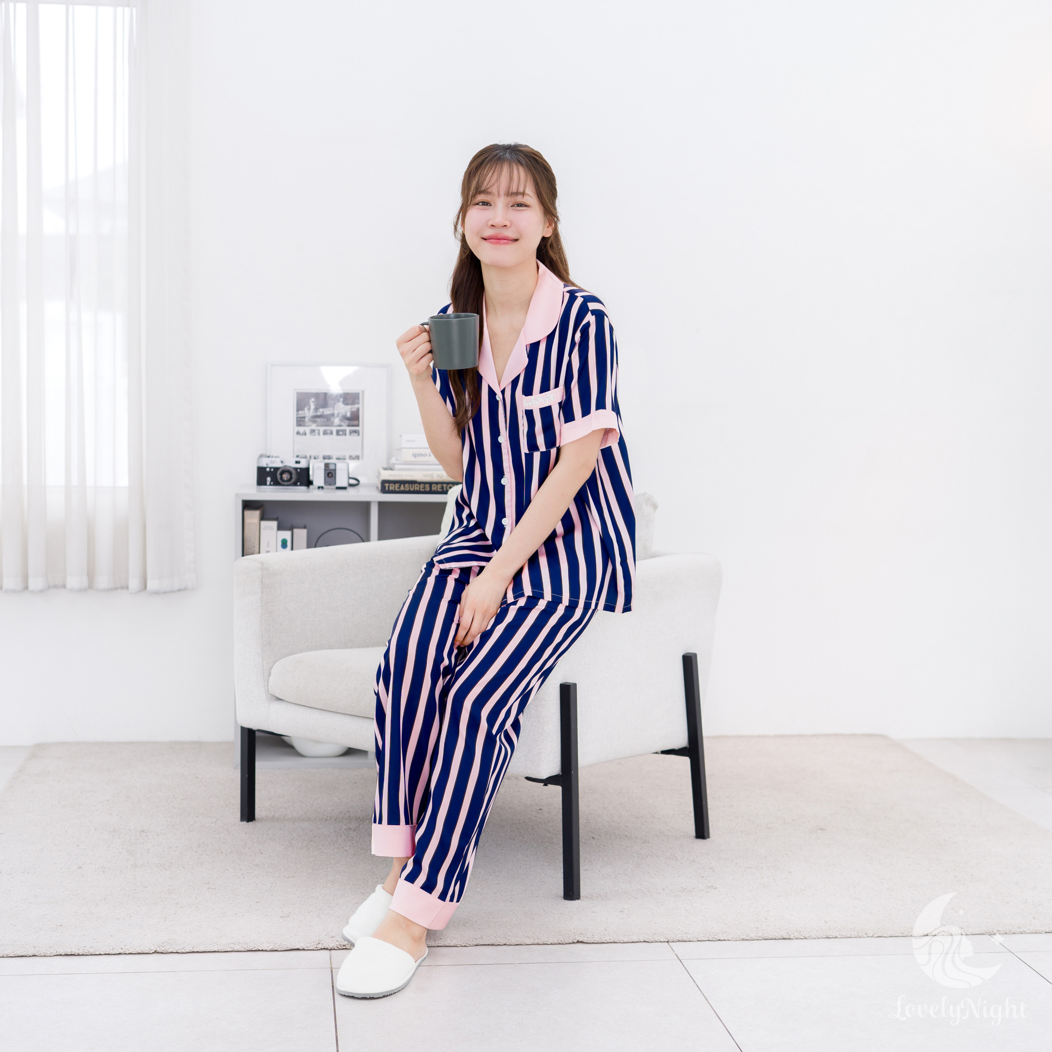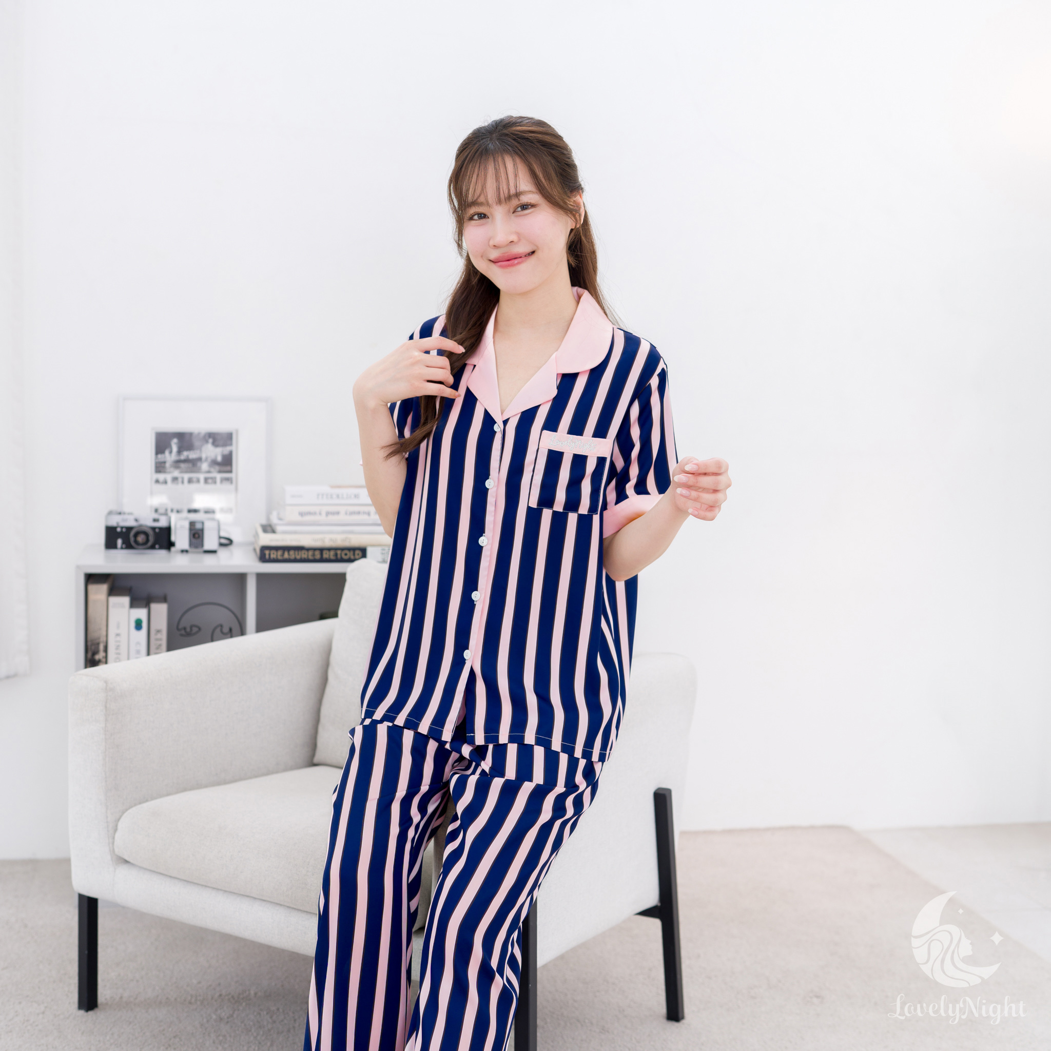 ชุดนอน LovelyNight แขนสั้น-ขายาว Midnight Pink D79